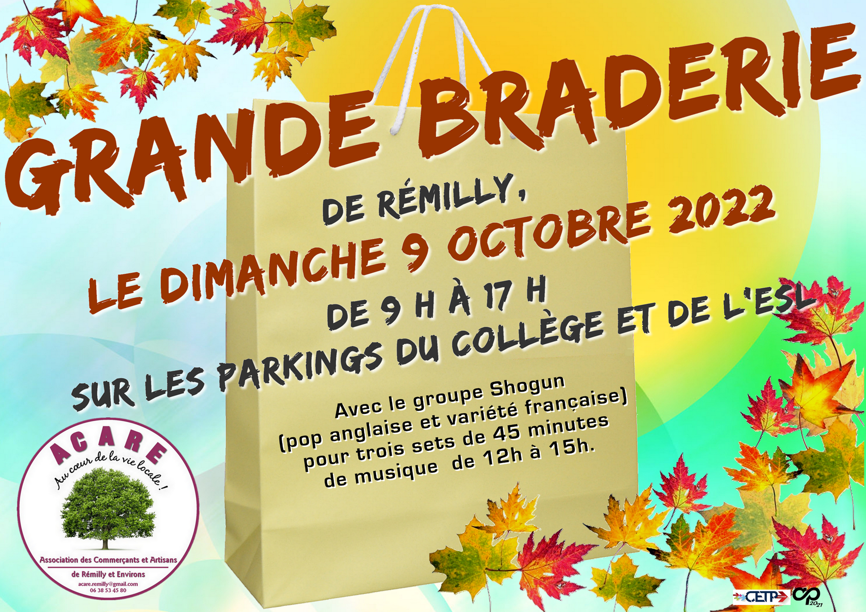 Elle vous a plu l’an passé. Notre événement a animé la vie locale. Alors notre Braderie d’automne revient cette année, avec en plus une nouveauté : un concert offert par l’ACARE.