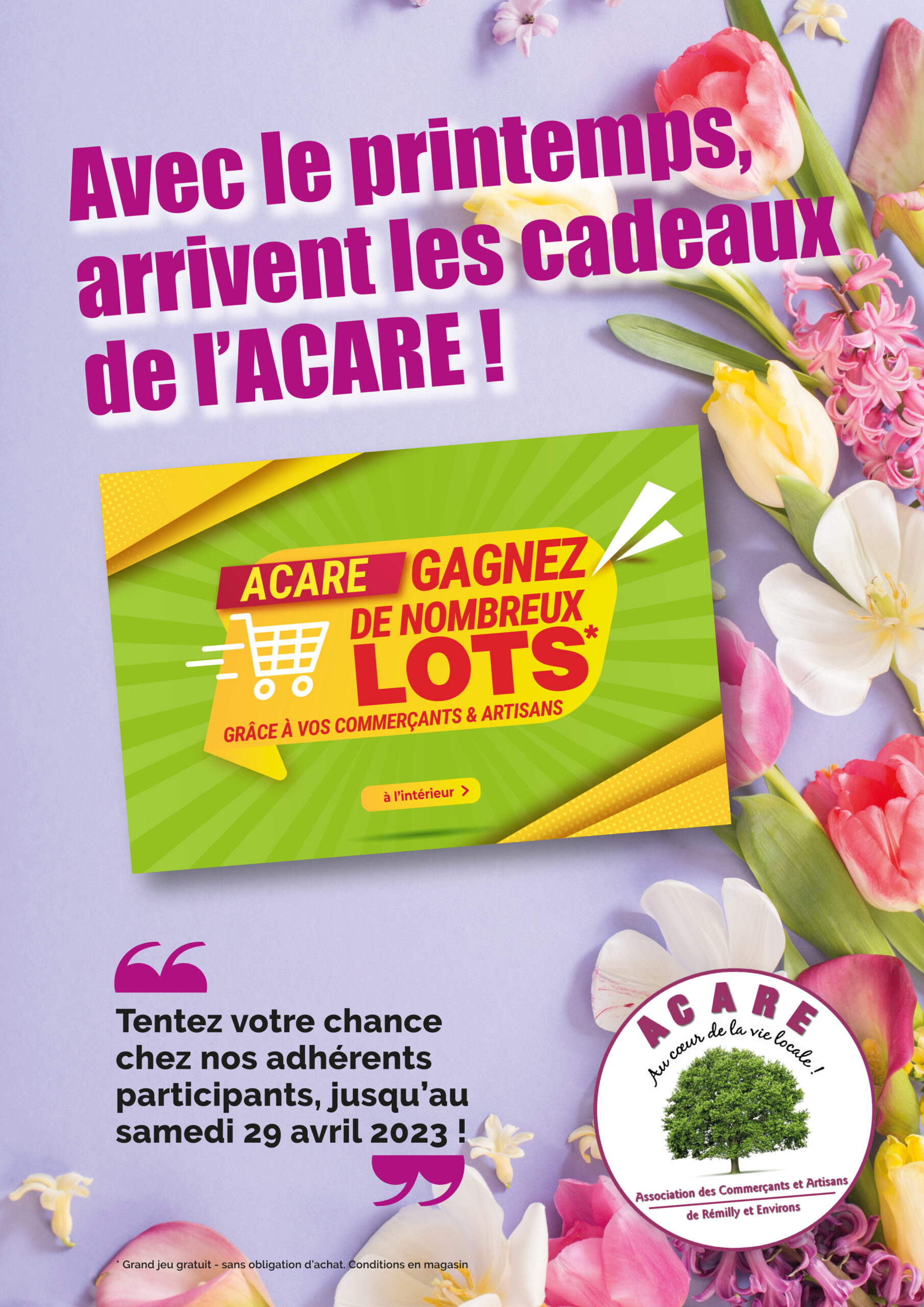 Avec le printemps, arrivent les cadeaux de l’ACARE : nos adhérents se sont mobilisés pour vous faire plaisir, avec de très beaux lots à découvrir ci-dessous !