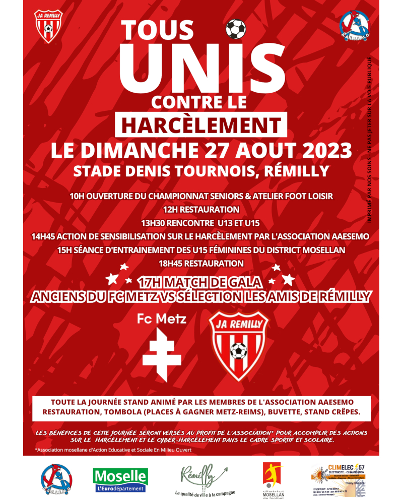 Une manifestation coorganisée par la Mairie de Rémilly, par l’Association mosellane d’Action Educative et Sociale En Milieu Ouvert, la JAR et les anciens joueurs du FC Metz.