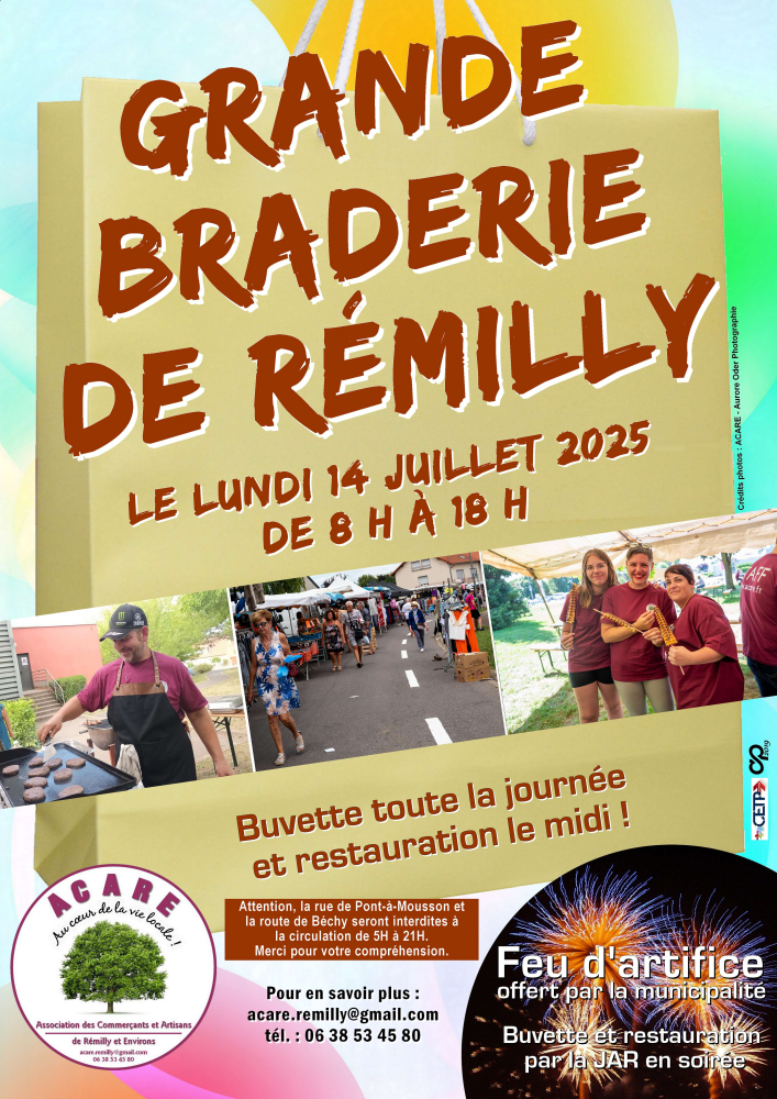 Rendez-vous le lundi 14 juillet, de 8h à 18h, entre la rue de Pont-à-Mousson et la route de Béchy ! Notre traditionnelle braderie se tiendra avec les exposants que vous attendez tous chaque année.